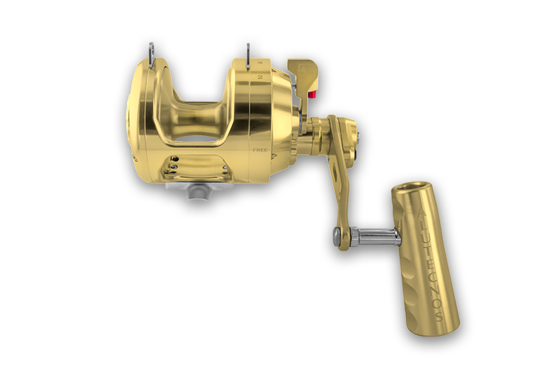 Gorilla 20V_2S, natural evolution of the Gorilla 20V series, compact, ergonomic and powerful, with a two speed system and a retrieve ratio 6.5:1/3.4:1. It does not fear comparisons with any catch. Integrated drag pre-set; drag side plate with ergonomic design for the maximum comfort during the fishing action; double drag disc “Multi Drag Disc” that can be set up to 45 lbs with guaranteed free spool; a longer reentrant lever that, combined with the ergonomic aluminum handle, allows to generate the maximum power to better use the two speed system and retrieve in easy way any catch.