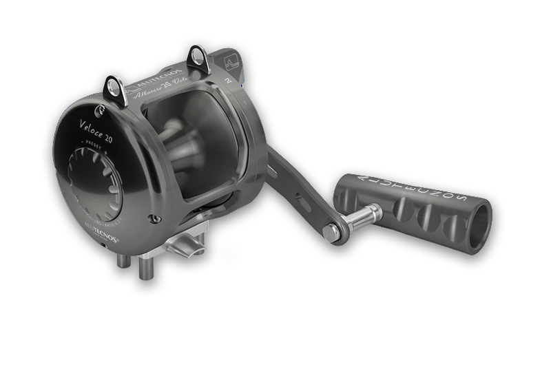 Albacore 20 Veloce, Drag-Preset integrato e flangia frizione dal design ergonomico, freno monodisco in grado di essere settato a 22.5 LBS con Free-Spool Garantito, impugnatura ergonomica che, grazie alla sua forma e angolazione mantiene il braccio nella posizione di massima spinta minimizzando la dispersione di potenza.
