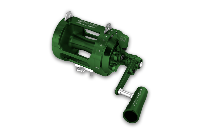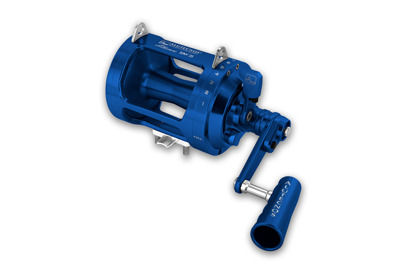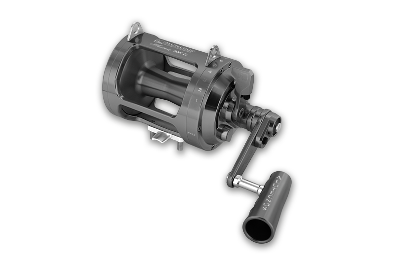 Albacore 50W 2S sistema “antireverse” infinito, gruppo cambio a due pulsanti e flangia destra in un unico pezzo. Dotato di cinque cuscinetti a sfera protetti in acciaio inox, una ruota libera, ingranaggi anch’essi in acciaio inox temperato ed un gruppo frizione in composito di carbonio dell’ultima generazione (in grado di assicurare lunghe ore di combattimento senza alterare le caratteristiche frenanti, insieme al mantenimento costante della dolcezza nella progressione della frenata e all’esclusione di fenomeni di stick-slip).