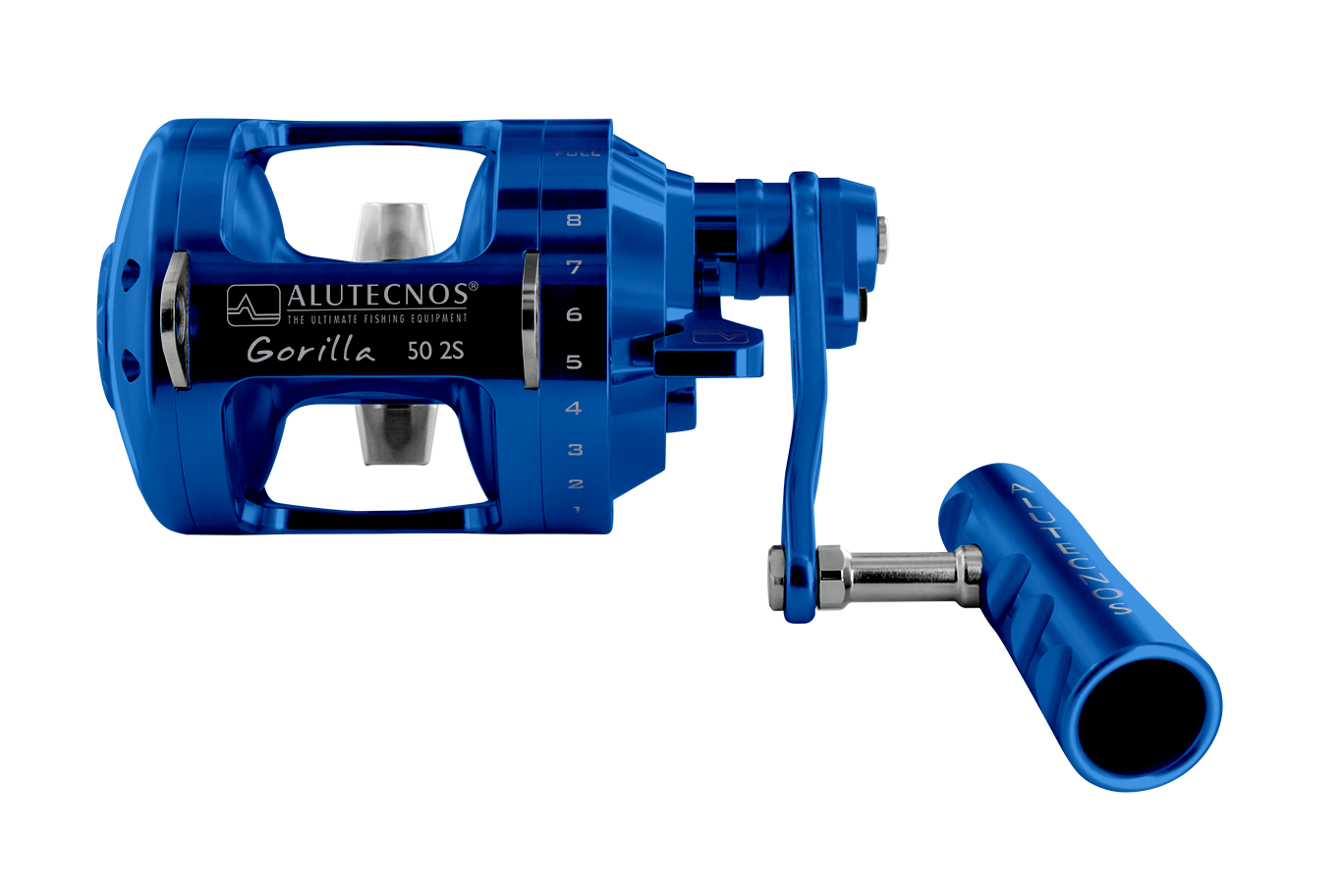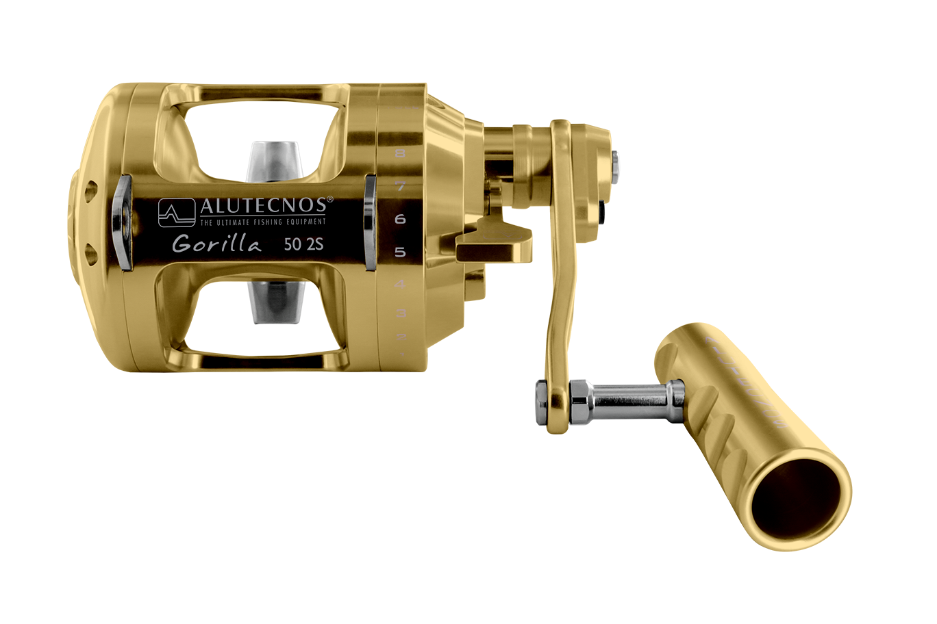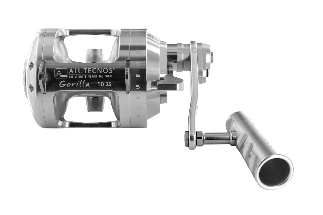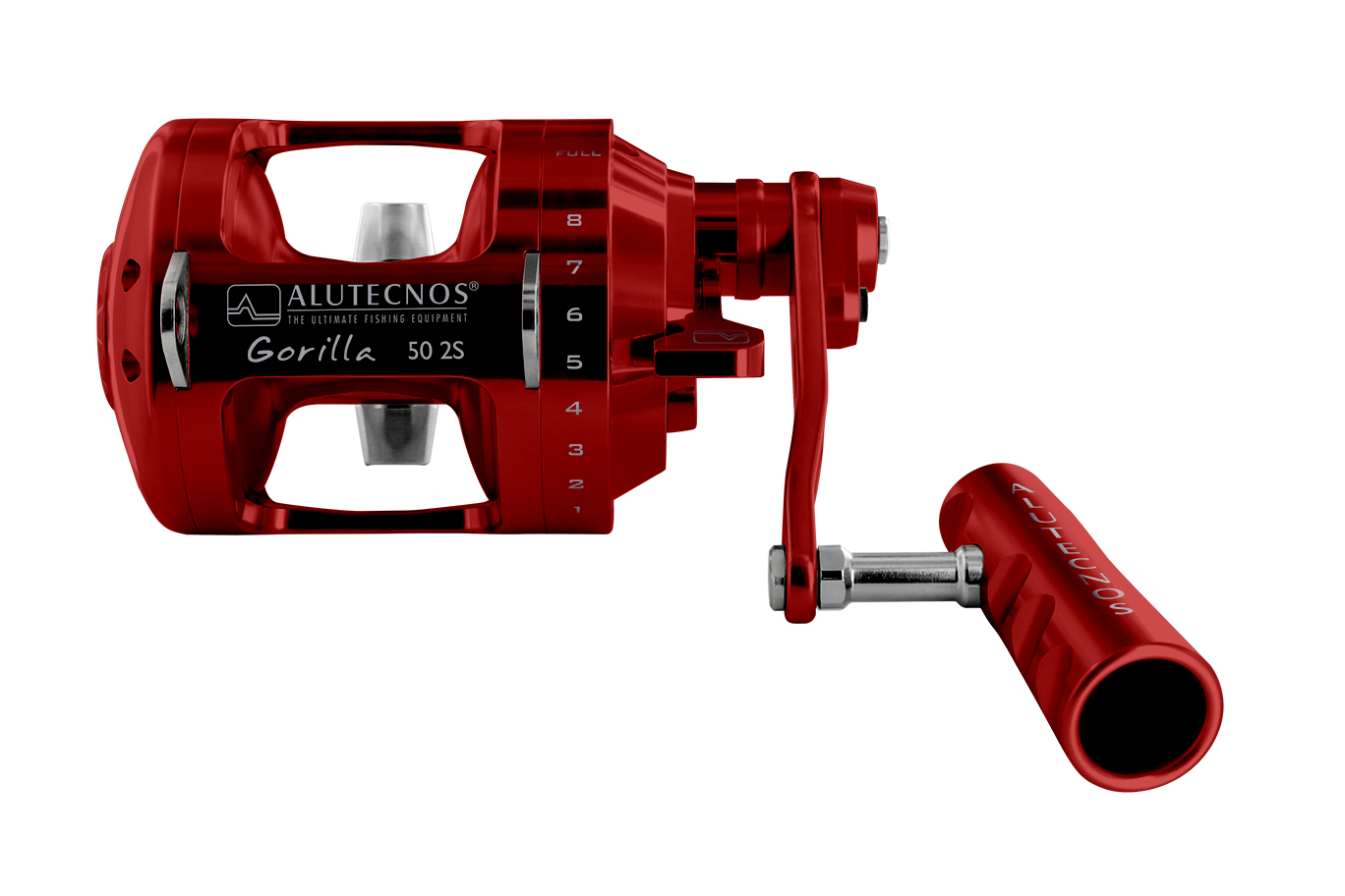 Compatti, ergonomici, potenti, a due velocità con rapporto di recupero 3,3:1/1,7:1. Look inconfondibile, progettato e prodotto in Italia da Alutecnos. Studiato nei minimi particolari per essere una pietra miliare di riferimento nelle attuali svariate e innovative tecniche di pesca. Grazie alle loro caratteristiche tecniche non temono confronti con qualsiasi gigante del mare di tutto il mondo e saranno dei fedeli compagni di avventura sempre pronti a soddisfare le tue esigenze. Gorilla 50 2S e 50W 2S , drag-preset integrato e flangia frizione dal design ergonomico per il massimo comfort durante l’azione di pesca, freno a doppio disco “Multi Drag Disc” in grado di essere settato oltre 55 Lbs con free-spool garantito, una leva azionamento rientrante e più lunga, abbinata all’impugnatura ergonomica in alluminio, consente di generare il massimo della potenza, per sfruttare al meglio il sistema a due velocità e recuperare con estrema facilità qualsiasi preda.