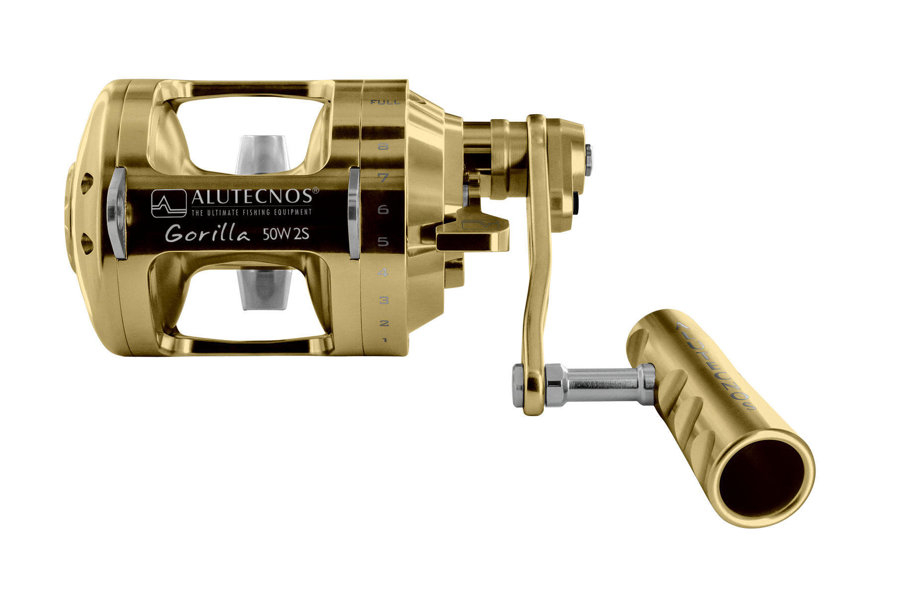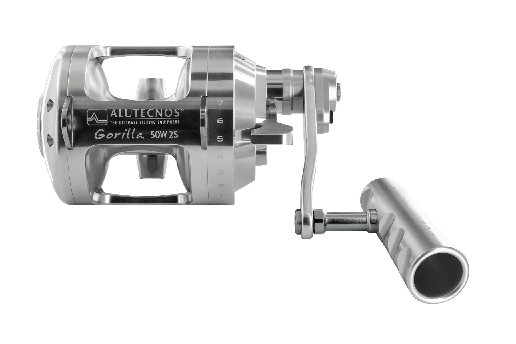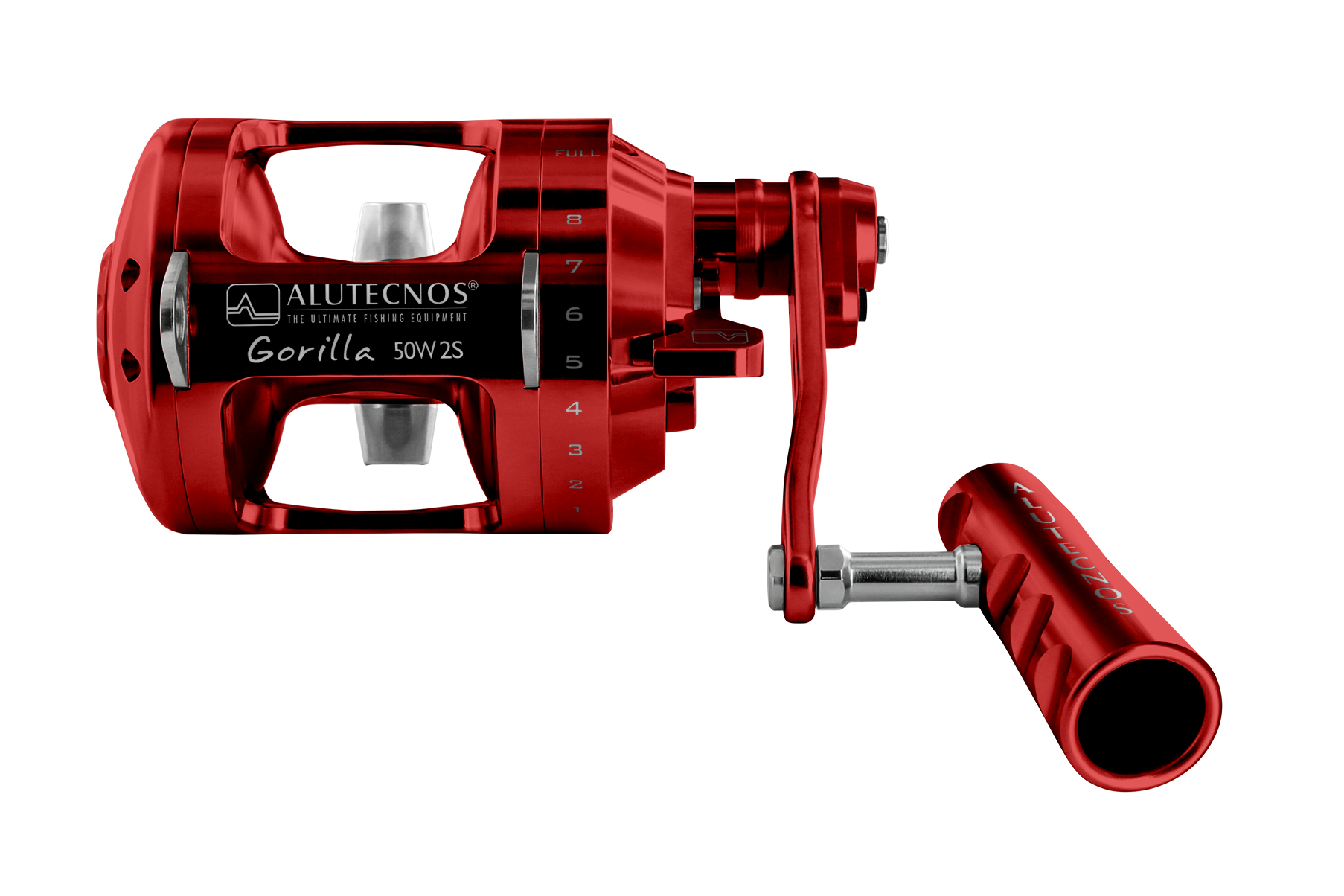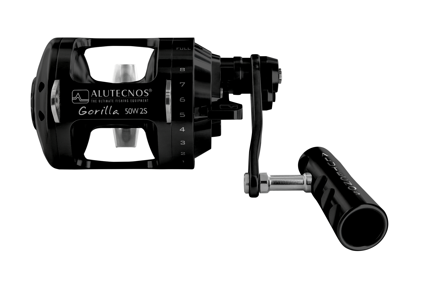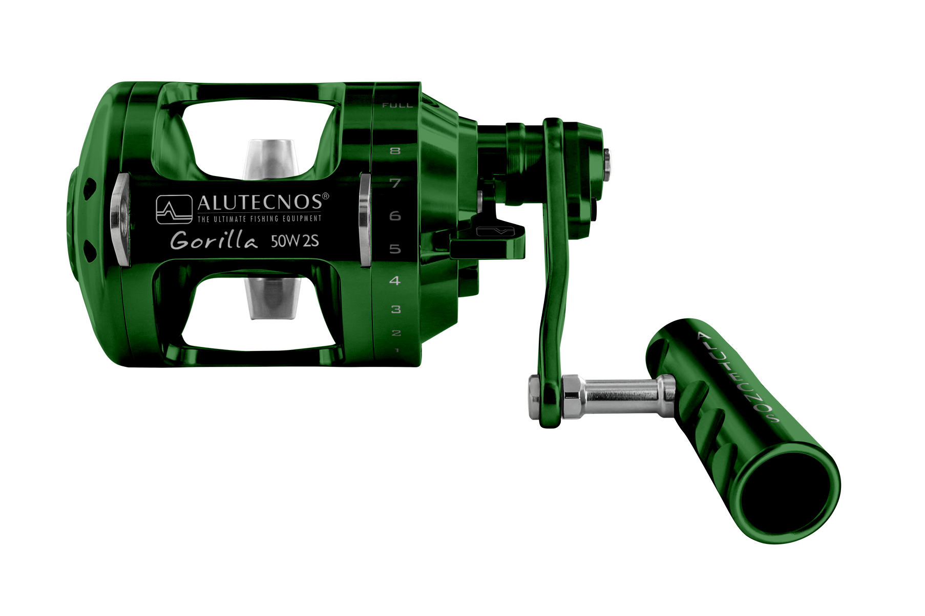 Compatti, ergonomici, potenti, a due velocità con rapporto di recupero 3,3:1/1,7:1. Look inconfondibile, progettato e prodotto in Italia, da Alutecnos. Studiato nei minimi particolari per essere una pietra miliare di riferimento nelle attuali svariate e innovative tecniche di pesca. Grazie alle loro caratteristiche tecniche non temono confronti con qualsiasi gigante del mare di tutto il mondo e saranno dei fedeli compagni di avventura sempre pronti a soddisfare le tue esigenze. Gorilla 50W 2S e 50 2S , drag-preset integrato e flangia frizione dal design ergonomico per il massimo comfort durante l’azione di pesca, freno a doppio disco “Multi Drag Disc” in grado di essere settato oltre 55 Lbs con free-spool garantito, una leva azionamento rientrante e più lunga, abbinata all’impugnatura ergonomica in alluminio, consente di generare il massimo della potenza, per sfruttare al meglio il sistema a due velocità e recuperare con estrema facilità qualsiasi preda.
